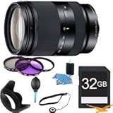 Sony SEL18200LE 18-200mm F3.5-6.3 E-Mount Lens Essentials Bundle with 32GB SD Card, Deluxe Filter Kit, Lens Hood, Cap Keeper, Lens Cleaning Kit, and Dust Blower